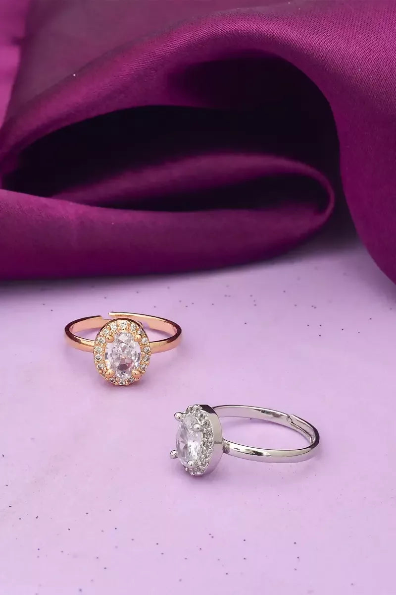 Alloy Glossy Finish Rings Set of 2 (Multicolor, Adjustable, 2)