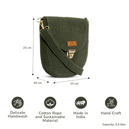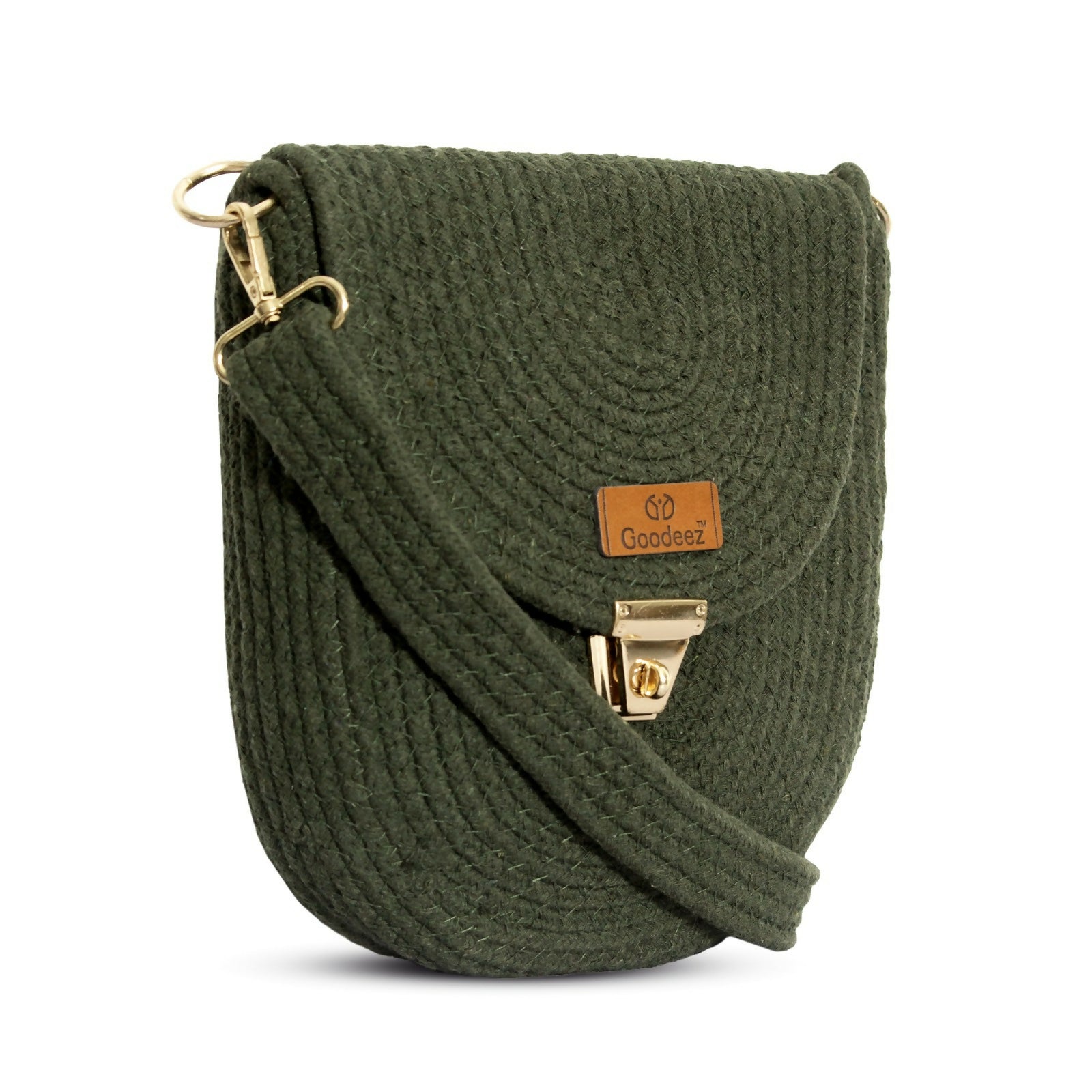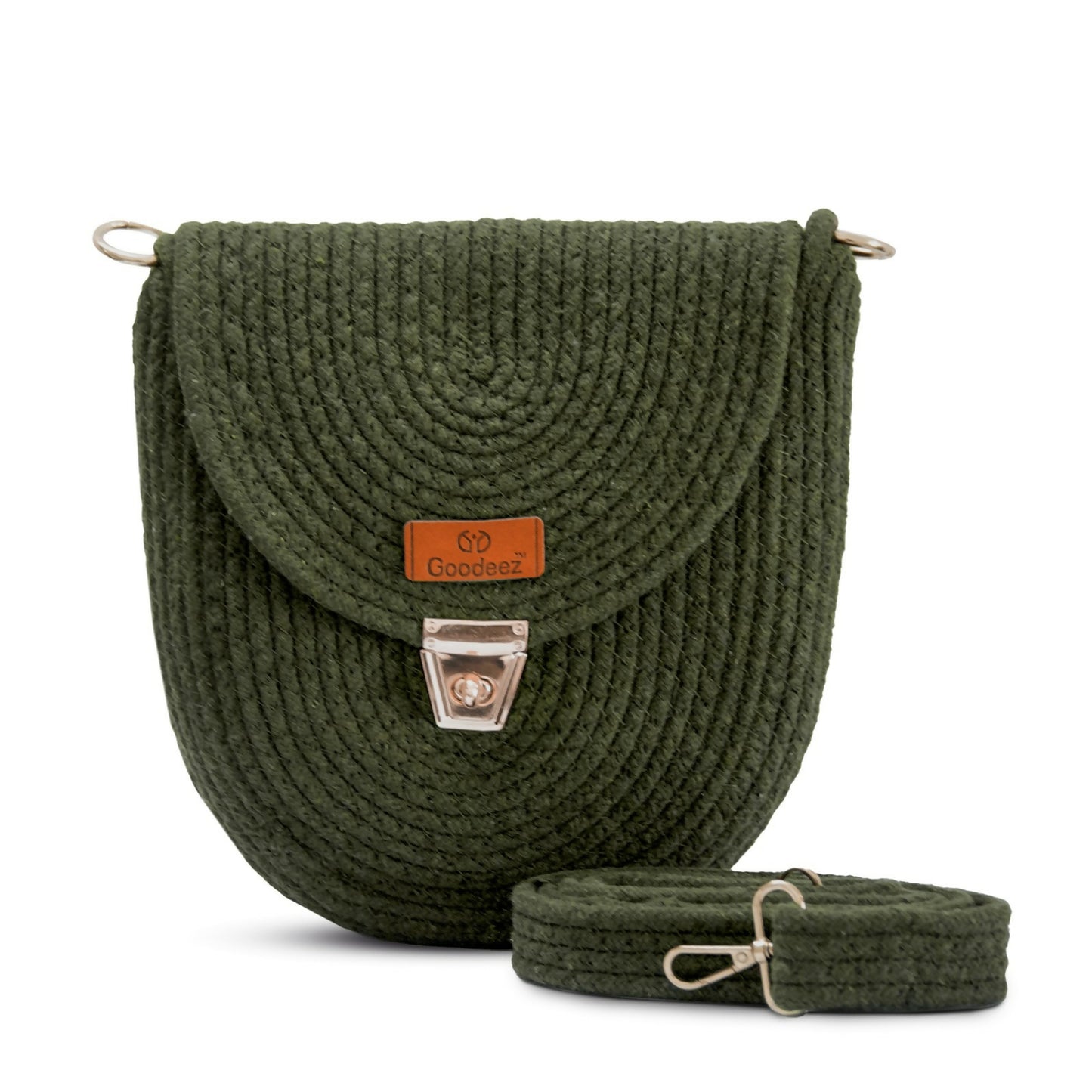 Goodeez Handmade Cotton Rope Crossbody Sling Bag for Women(Army Green)