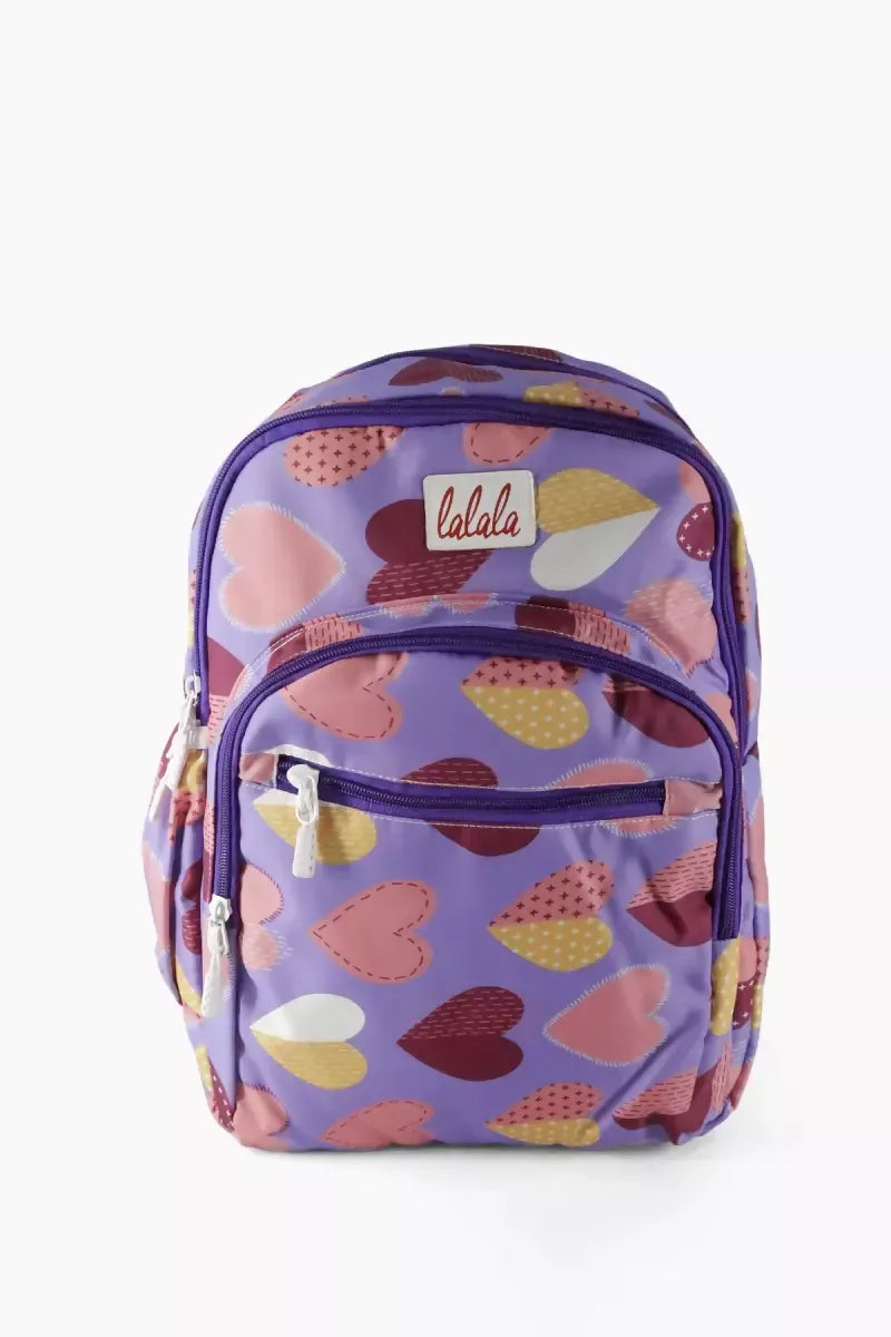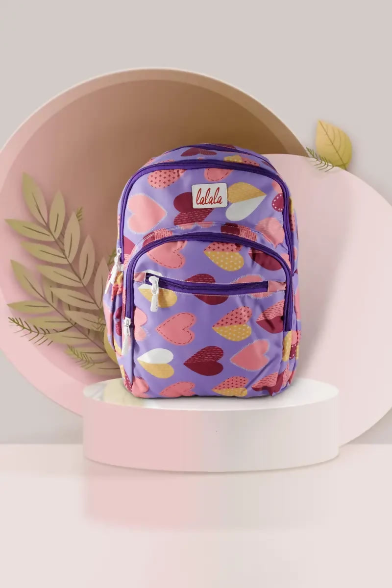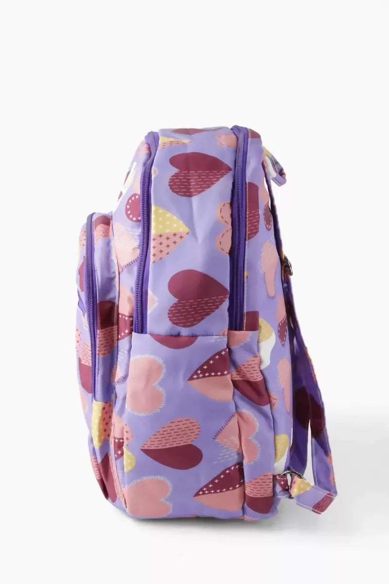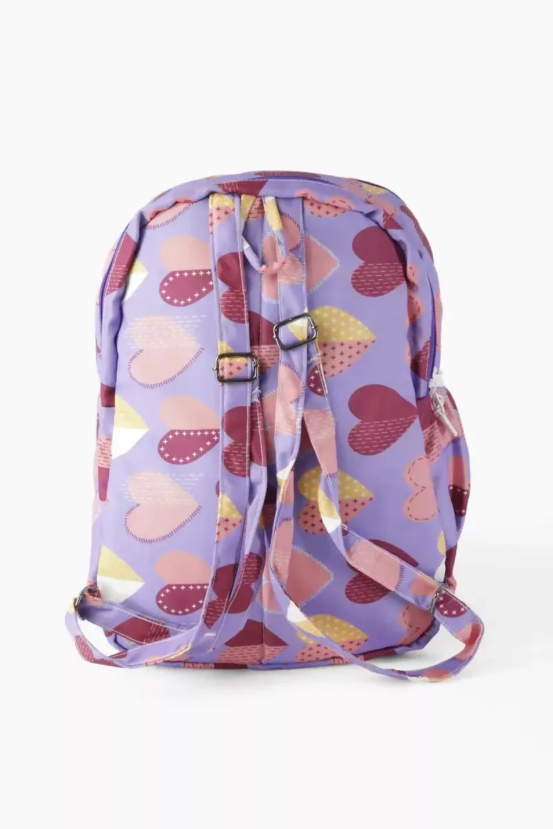 • Unveiling the hearts printed college backpack, exclusively tailored for girls.
