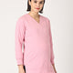 • Lilac Pink Sweatshirt with Pearl Detailing at Neck