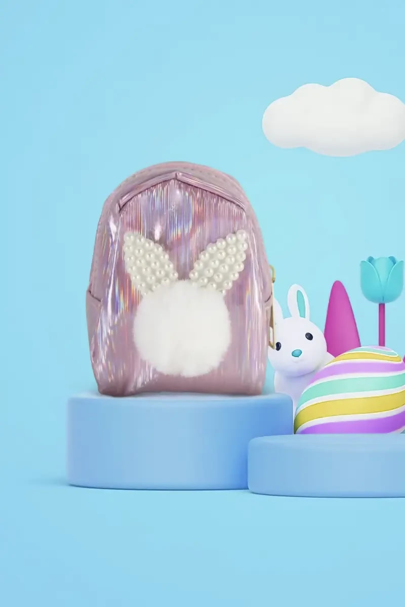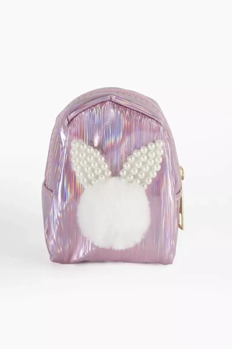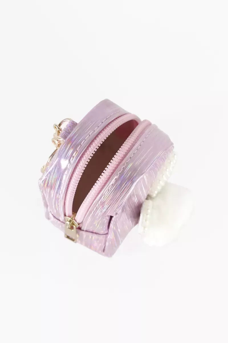 Mini Coin Purse Keychain with Fluffy Pompom (Light Pink)