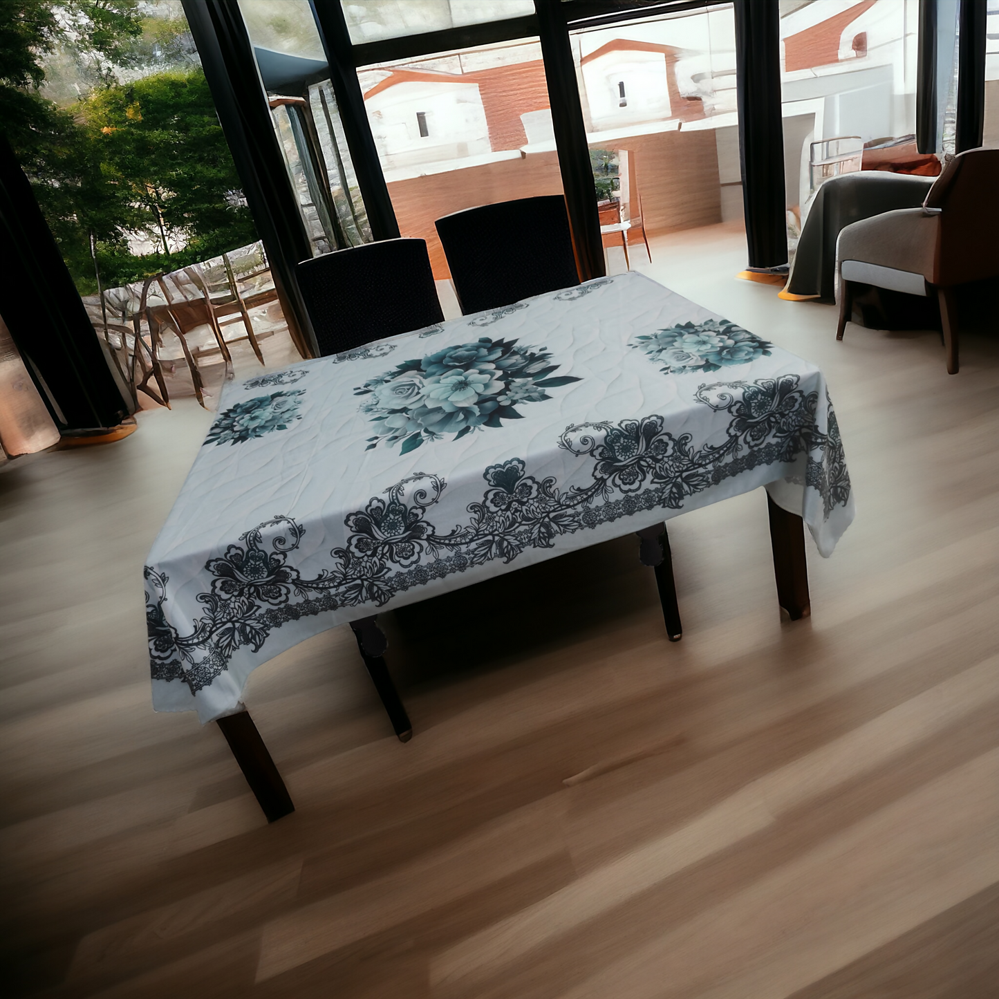 Mopak Decor 3D Light Blue Floral Tablecloth for Serene Dining: 2 - 4 seaters (38 x 58 inches)