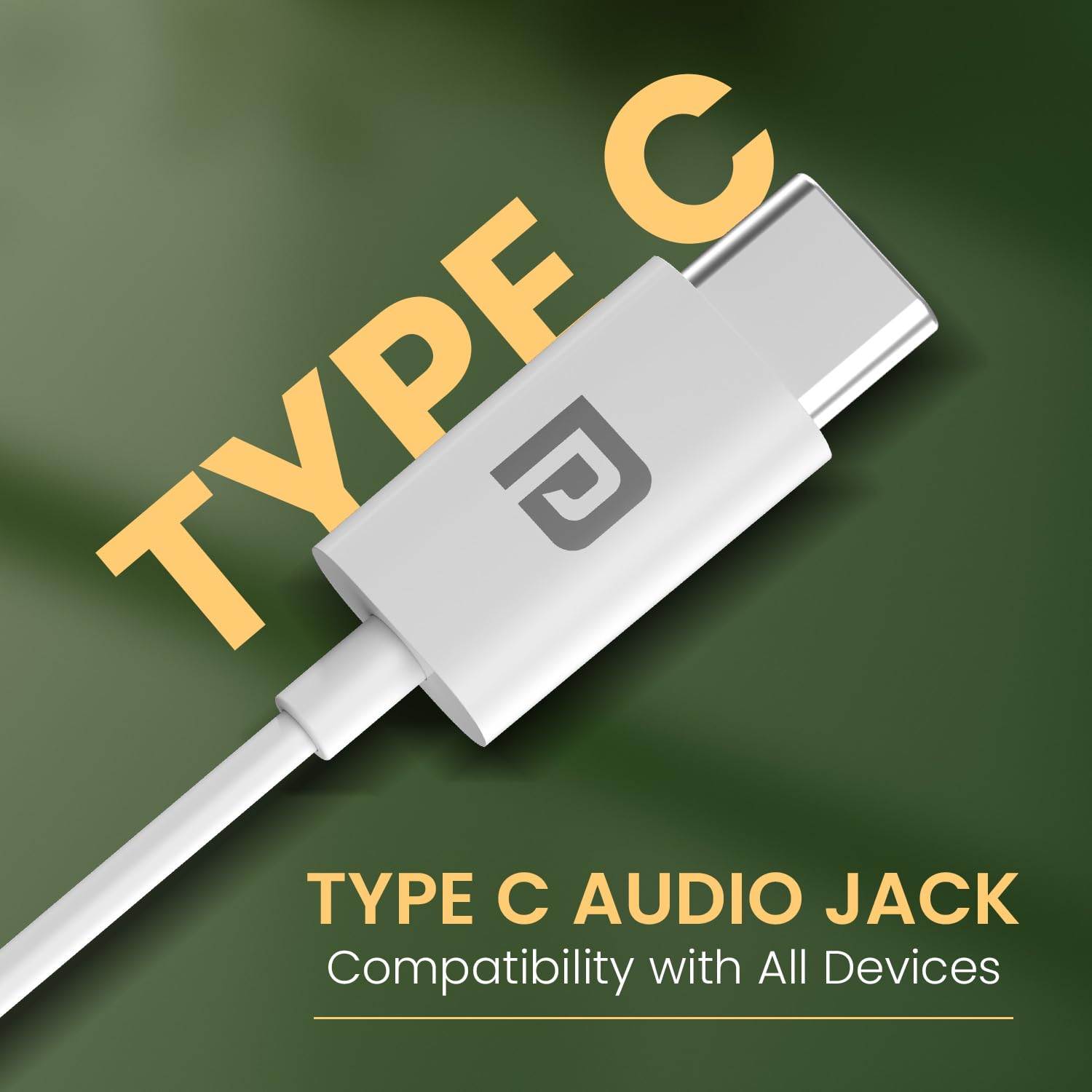 Portronics Conch Kappa C in Ear Type C Wired Earphones with In Line HD Mic, Powerful Audio, 14.2mm Dynamic Driver,TPE Anti Tangle Wire,Wide Compatibility(White)