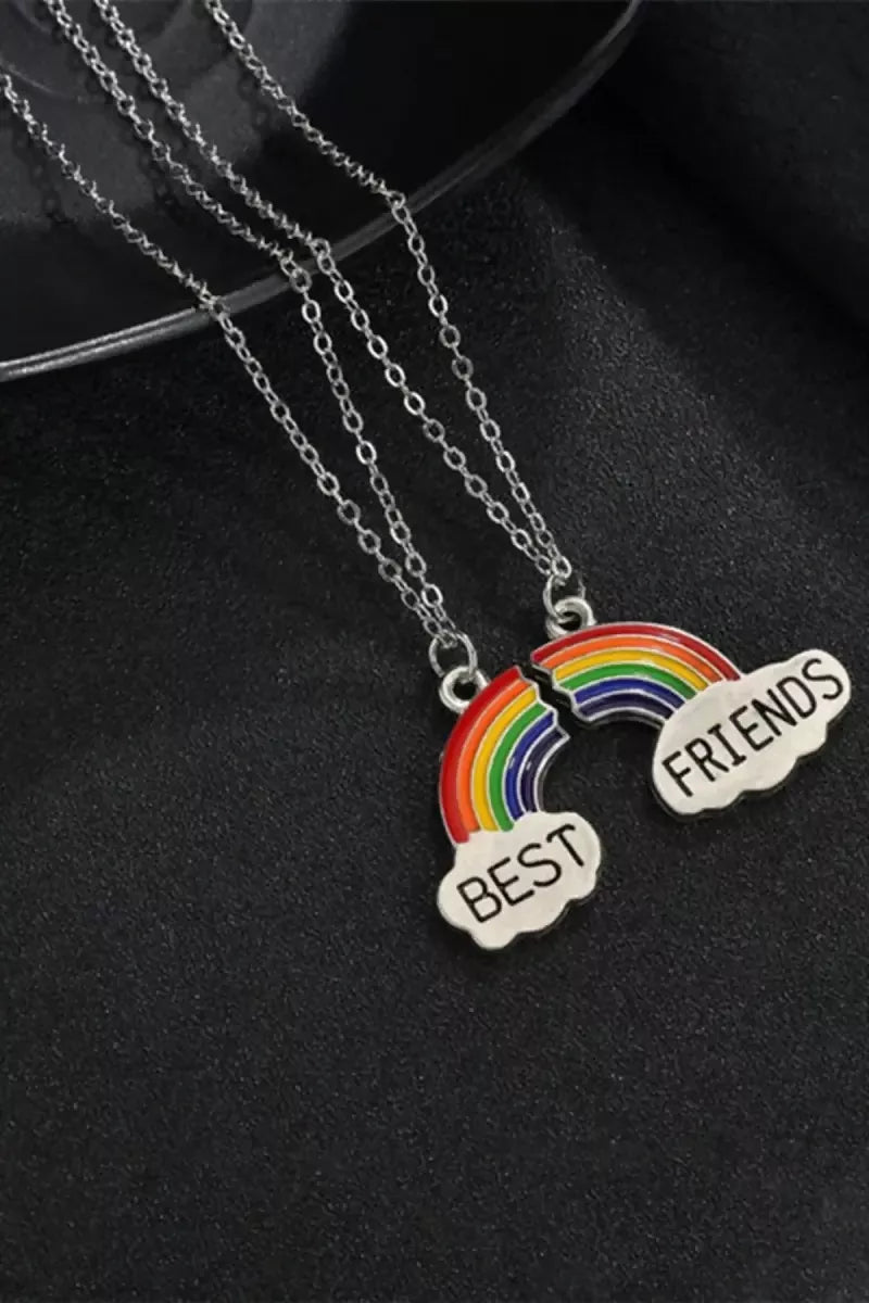 🌈 Friendship Symbol: A split rainbow pendant representing an unbreakable bond.