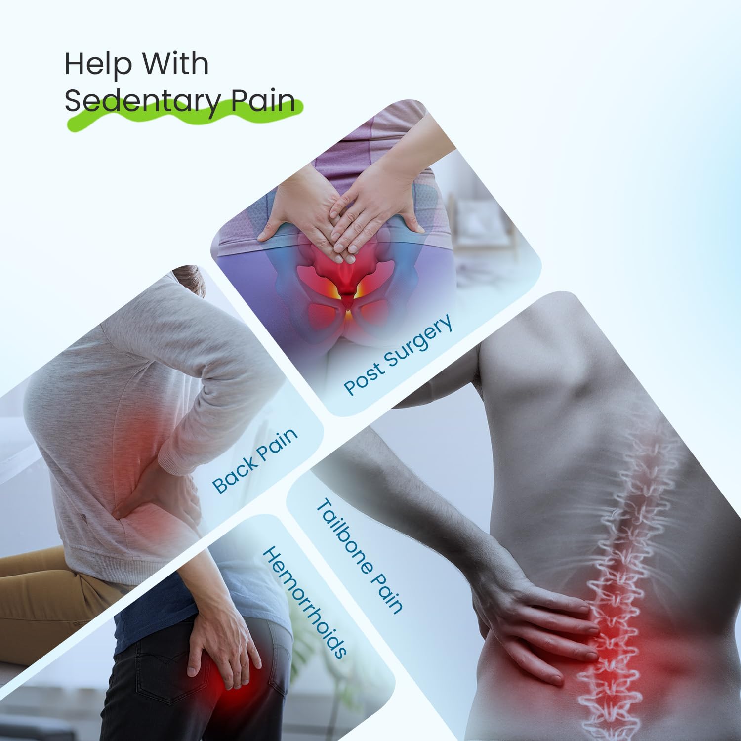 • Specially designed by experts, this coccyx cushion alleviates discomfort from hemorrhoids, piles, sciatica, postpartum recovery, surgery, and lower back pain, making it ideal for anyone who spends long hours sitting.