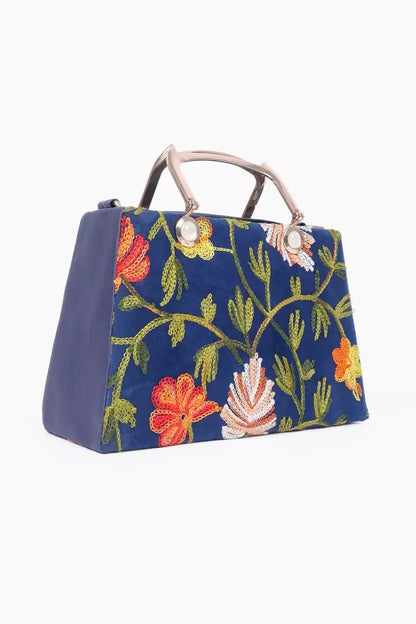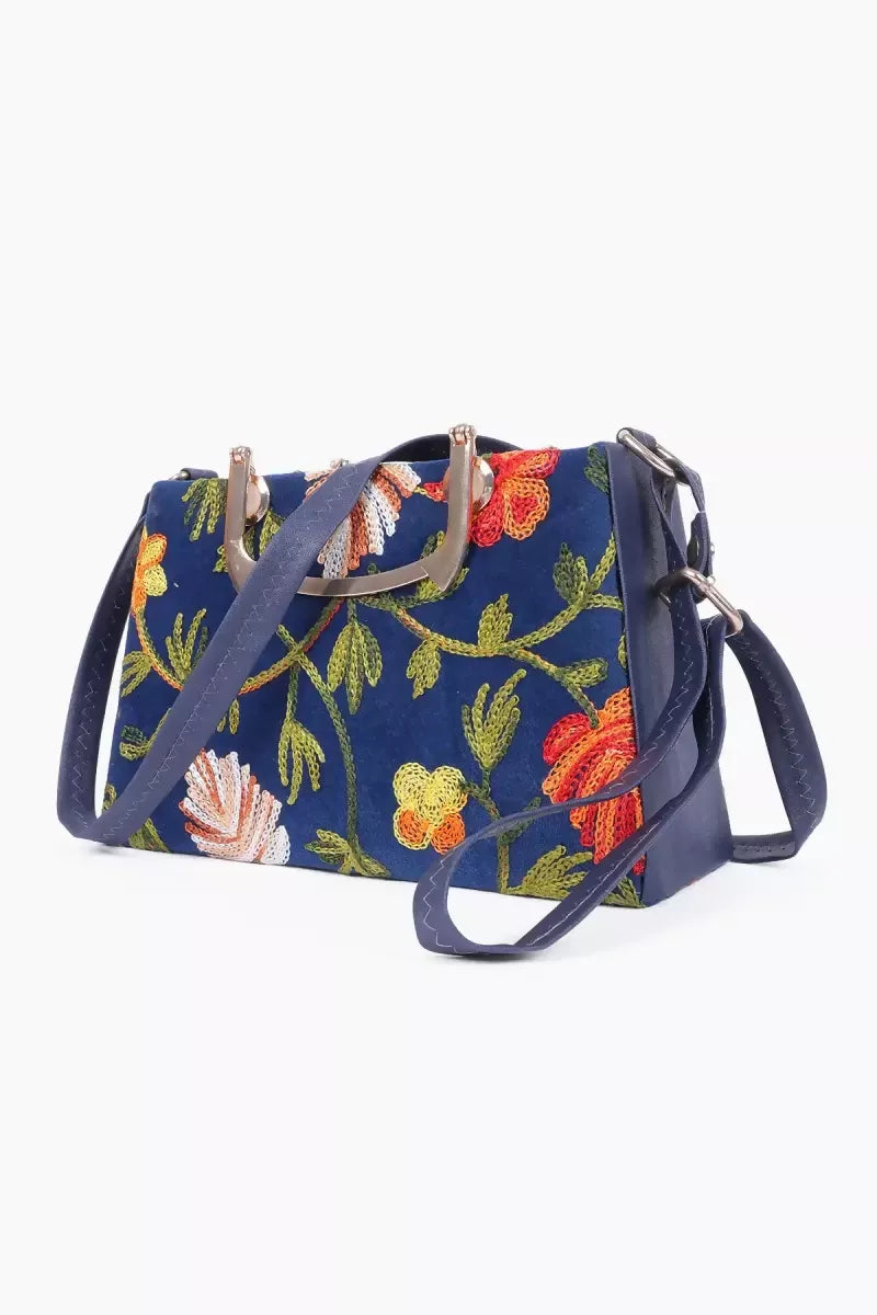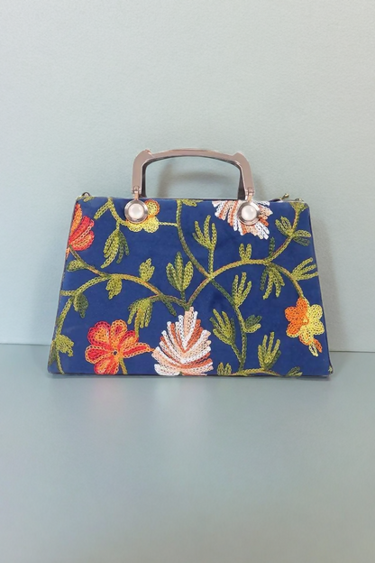 Elegance - Women’s Opulent Embroidered Lightweight Sling Bag( Blue )