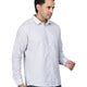 This Poly Cotton Full Sleeves Solid Shirt offers a clean, professional, and versatile look. While the requested color is "Black (M)", the shirt in the image appears to be a very light grey, light silver, or off-white with a subtle vertical stripe/texture. We will use the visual appearance for the description.