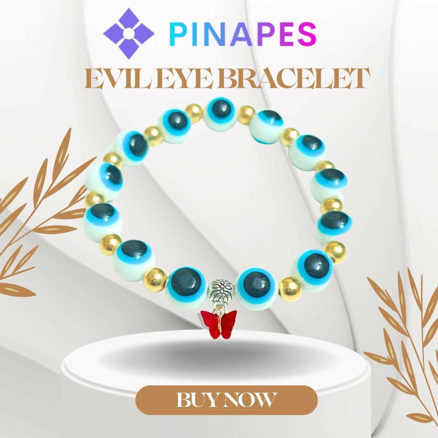 Pinapes Evil Eye Charm Bracelet with Red Butterfly Beads – Stylish Protection Jewelry for Women (White)