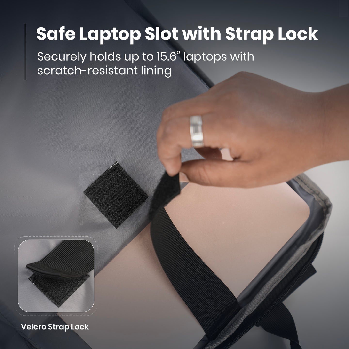 • Fits Laptops up to 15.6 Inches: Dedicated compartment with strap lock keeps your laptop secure and protected.