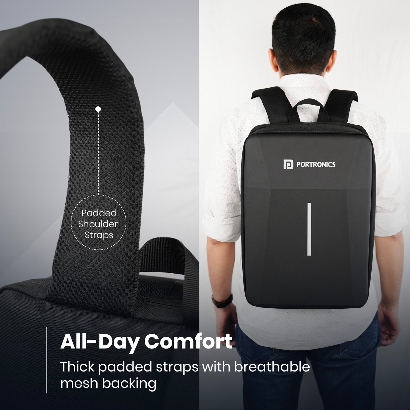 Portronics Byte 2 Laptop Backpack for Laptops up to 15.6 Inches & Durable Zippers, Unisex (Black)