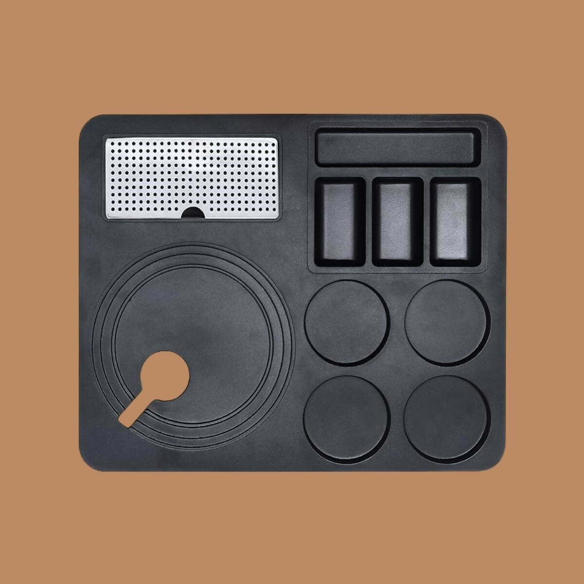 • DESIGN LAYOUT: Features dedicated spaces for kettle, cups, condiments with a perforated section for utensils and a large circular kettle placement area