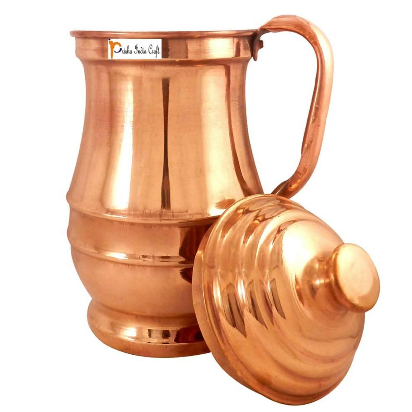 Prisha India Craft Handmade Copper Jug Pitcher, Serveware & Tableware, Good Health Benefits, Maharaja Jug with Lid,1300 ML