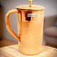 - Prisha India Craft pure copper luxury design water jug pitcher, color: brown, material: copper, each jug weight: 400 gram, height: 8.00 inch, diameter: 4.60 inch, capacity 1600 ml.