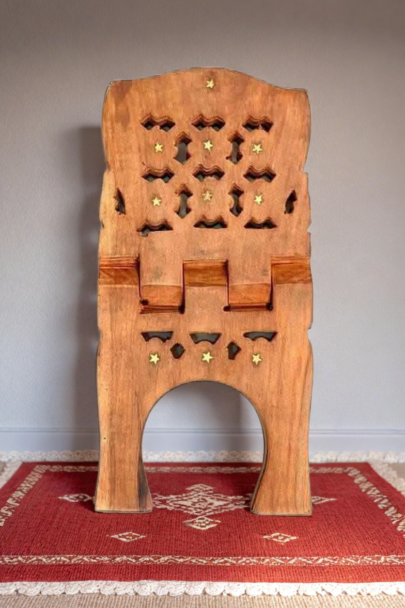 • This quran sharif Book stand / ramadan decorations for home Foldable quran book stand for reading Handcrafted Royal Quran Book stand Reheal is made of premium quality wood material which ensures longevity