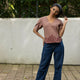 Women’s Handprinted Cotton Linen Top with Tulip Sleeves