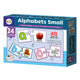 Alphabet Small Puzzle includes 24 self-correcting two-piece puzzles, each featuring an uppercase letter and a corresponding object image.