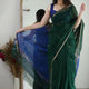- The rich dark green body exudes sophistication, while the striking pallu adds a royal touch — a perfect harmony of classic and bold.