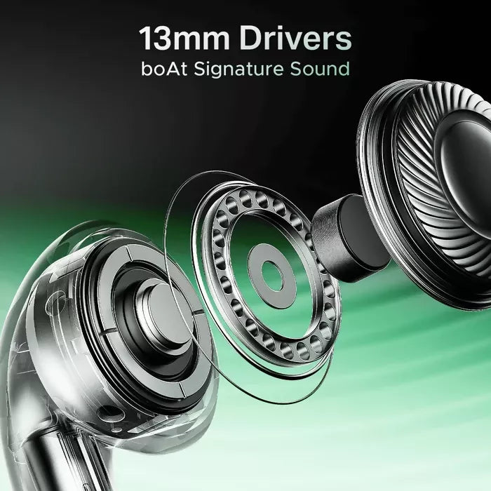 • Immersive Signature Sound: Powered by large 13mm Drivers that deliver punchy audio and the signature bass-rich boAt sound experience.