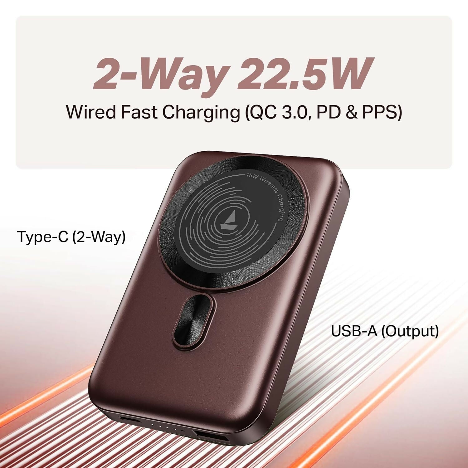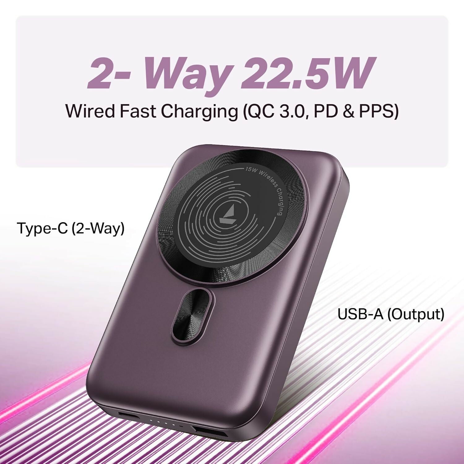 boAt New Launch EnergyShroom PB331 (Magsafe) 10000mAh Magnetic Wireless Powerbank, 15W Wireless & 22.5W Wired Charging for (iPhone 16,15,14,13 & 12, Android & Other Qi Enabled Devices) (Multicolor)
