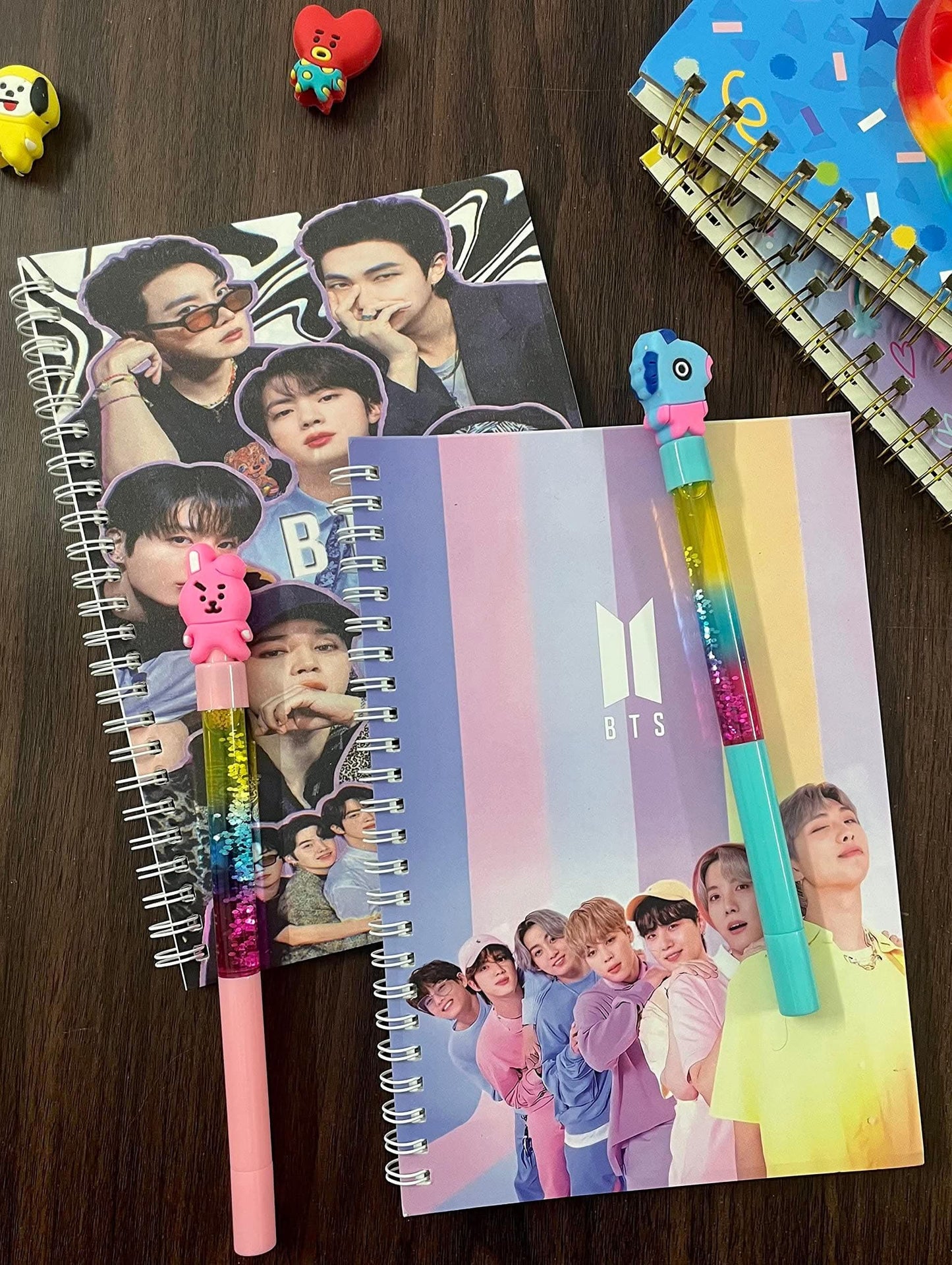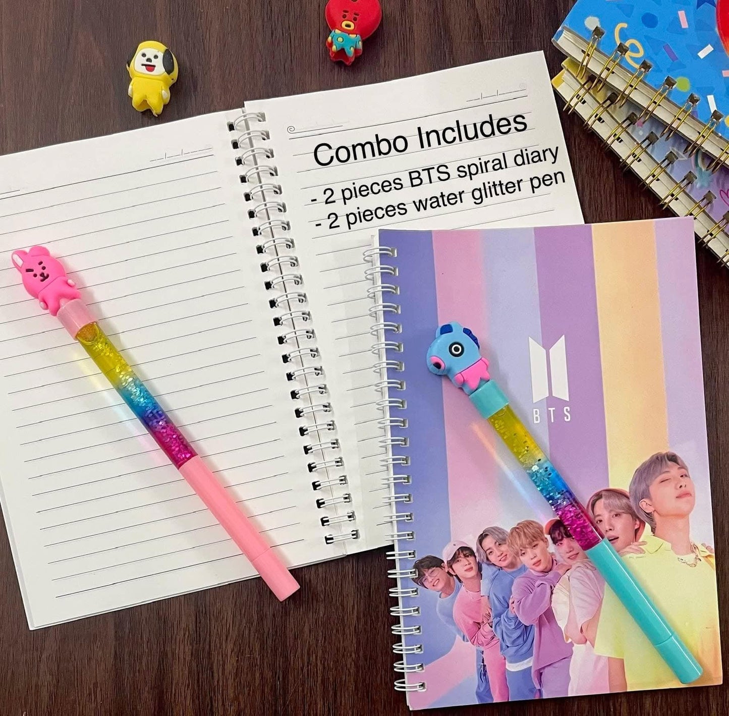 BTS group theme spiral diary with water glitter , cute stylish pen