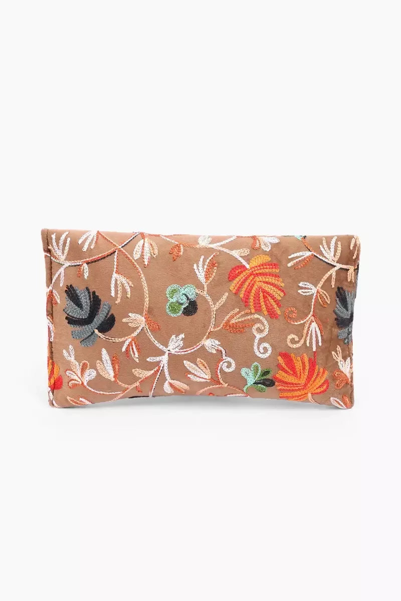 Elegant Embroidered Evening Clutch with Chain Strap for Women( Brown )