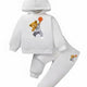 Kids Basketball Teddy Bear Printed White Cotton Blend Hoodie & Jogger Set