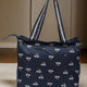Letter Printed Canvas Tote Hand Bag for Girls (Navy Blue)