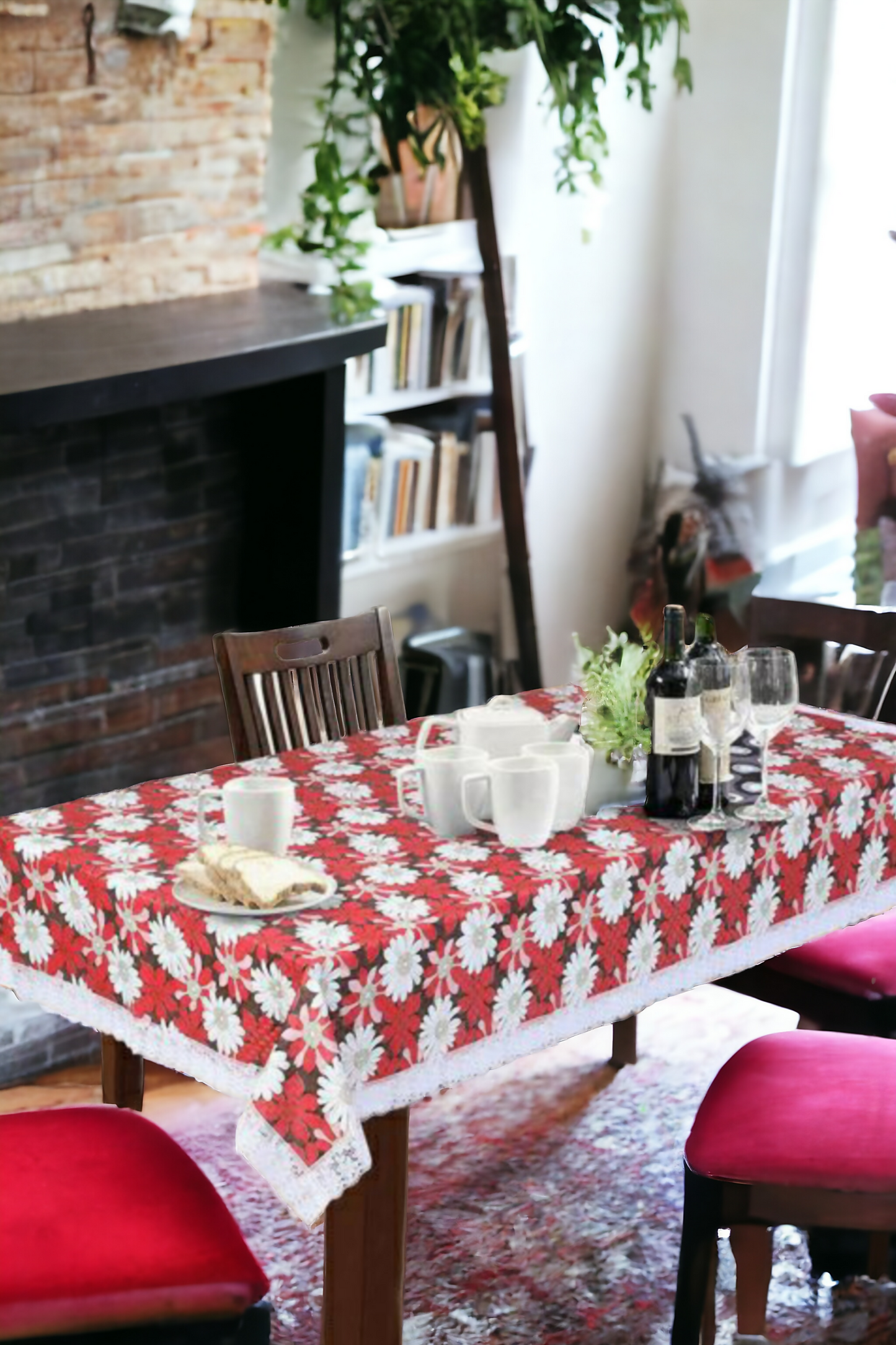Mopak Decor Radiant Red Big Flower Embroidered Table Cover – Small & Large (40x60 & 60x90) Inches