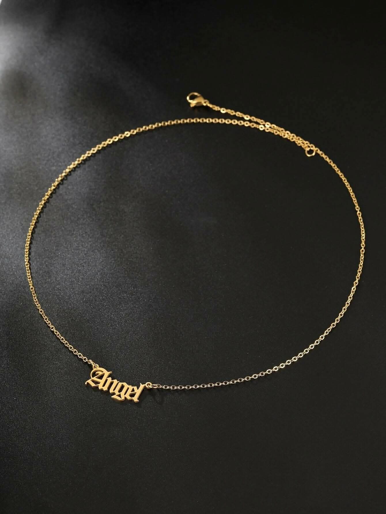 Pinapes Letter Pendant Necklace Chain Gold Angel Old English Letter Necklace