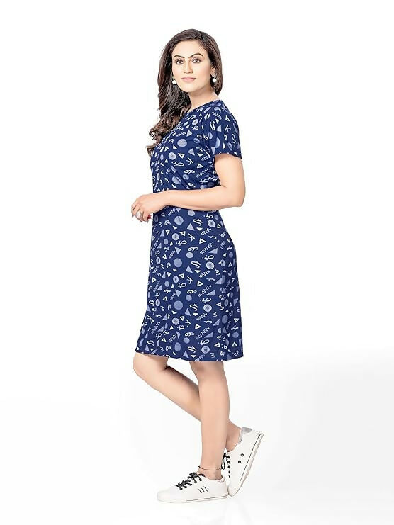 Printed Knee-Length Cotton Night Dress for Women (Blue)