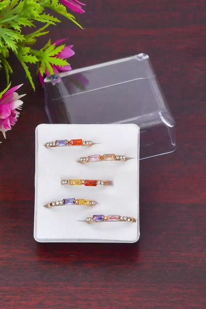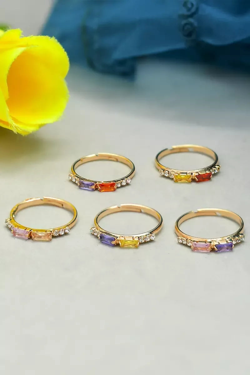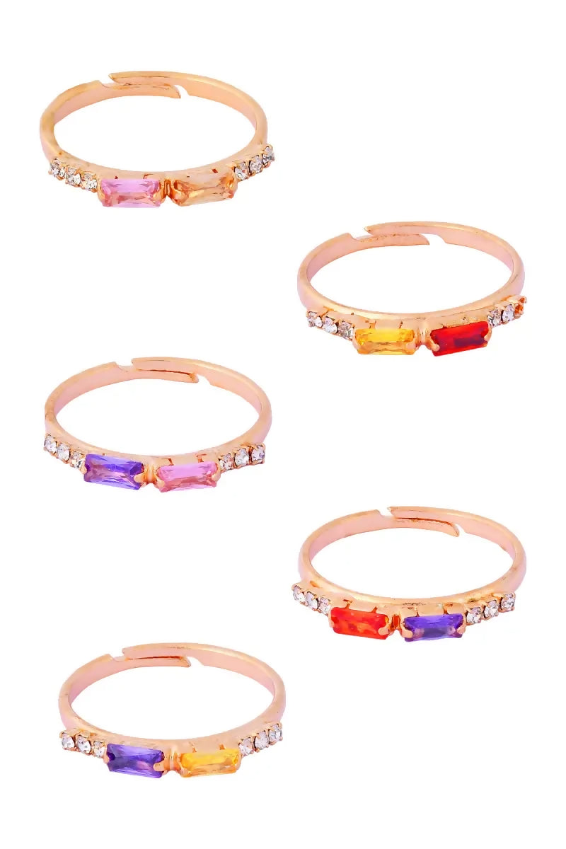 Rose Gold Coloured Stone Rings - Set of 5 (Multicolor, Adjustable, 5)