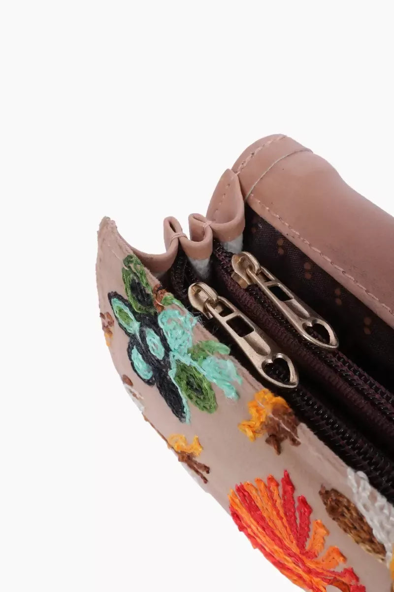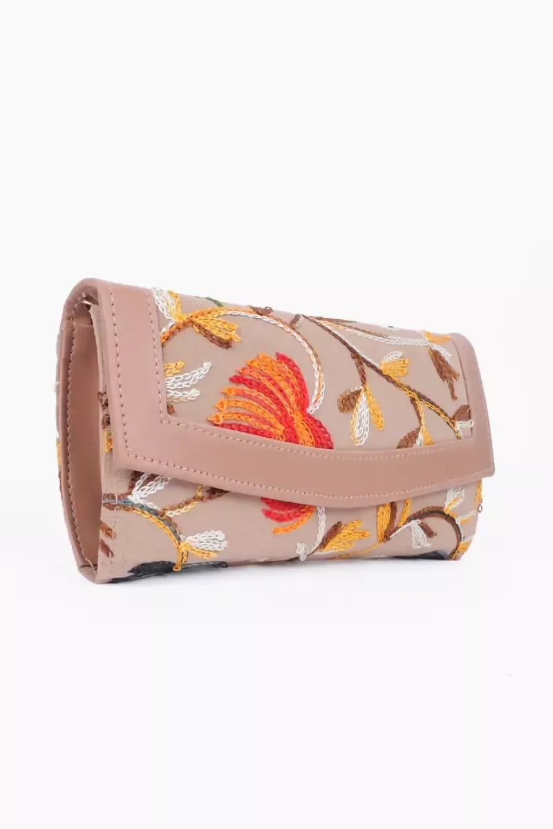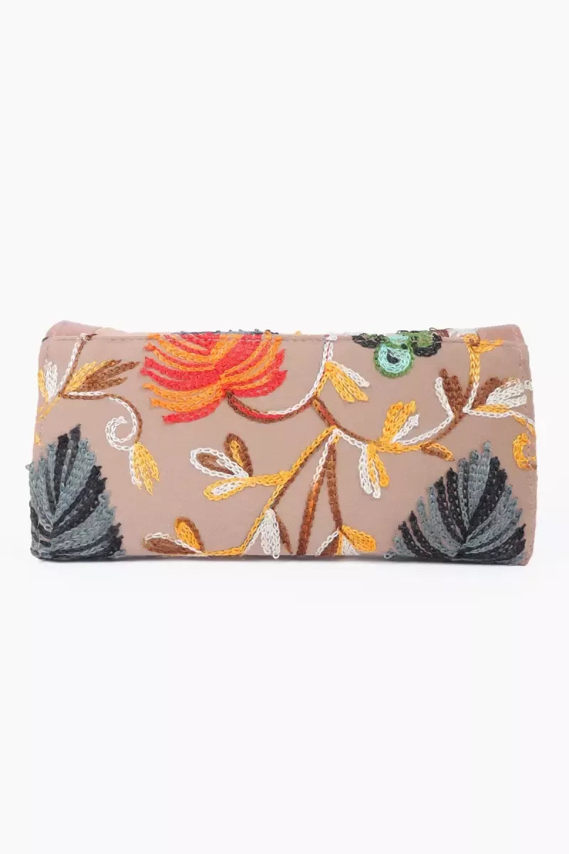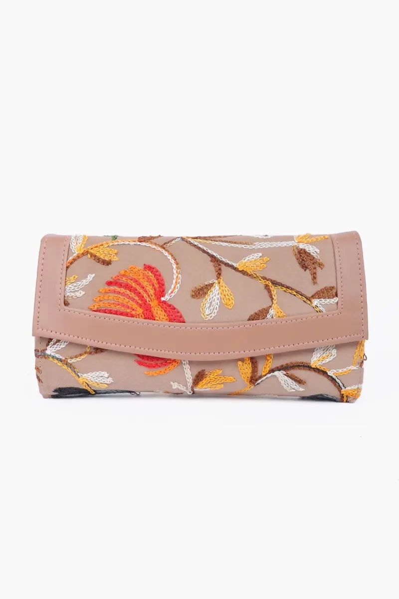 Floral Embroidered Elegance Clutch for Women( Light Brown )