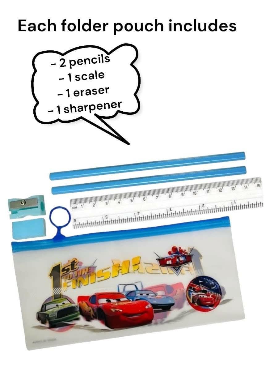 Le Delite 6 Pieces Cartoon Zipper Folder Pouches for Kids with Stationary Pencil, Scale, Eraser & Sharpener (Pack of 6)