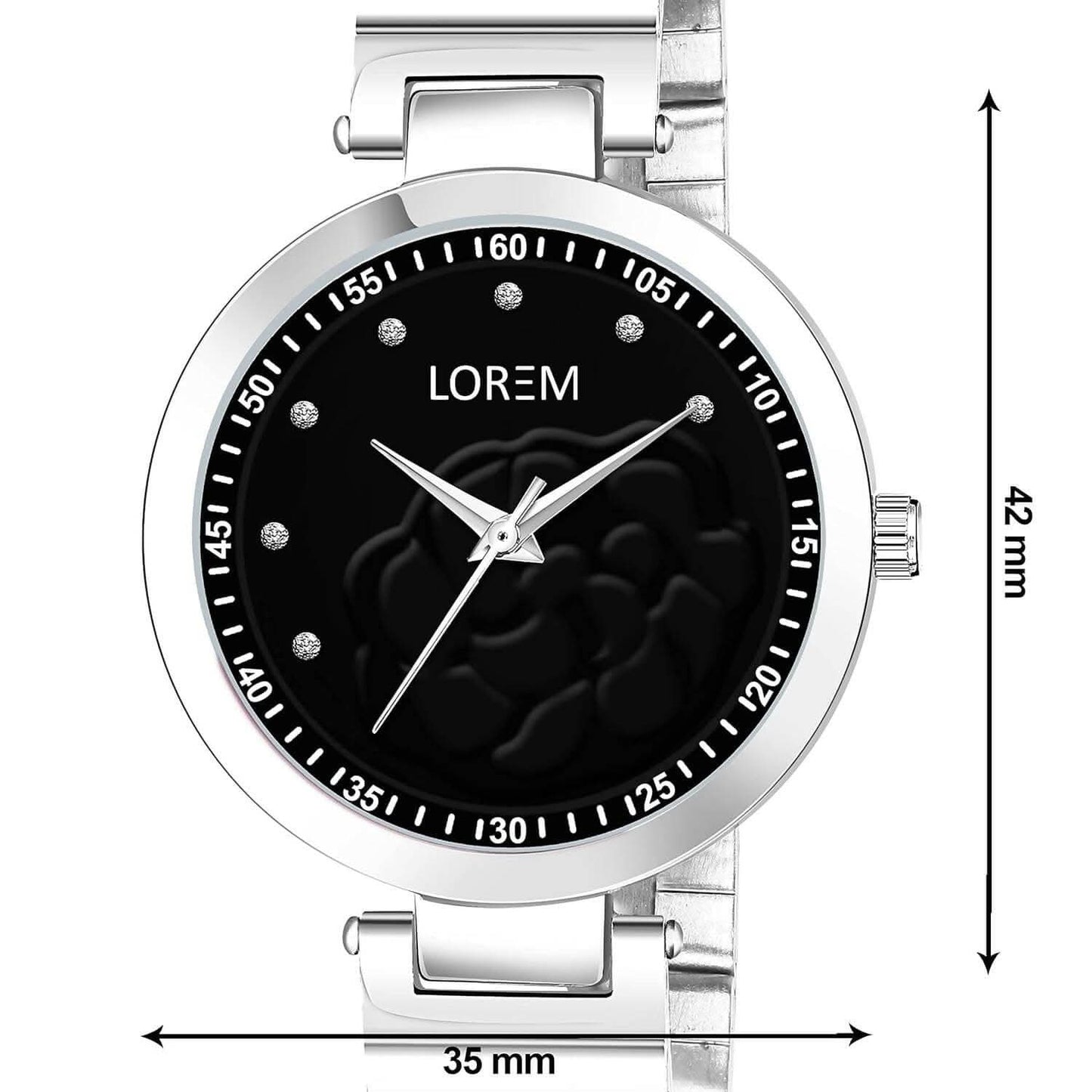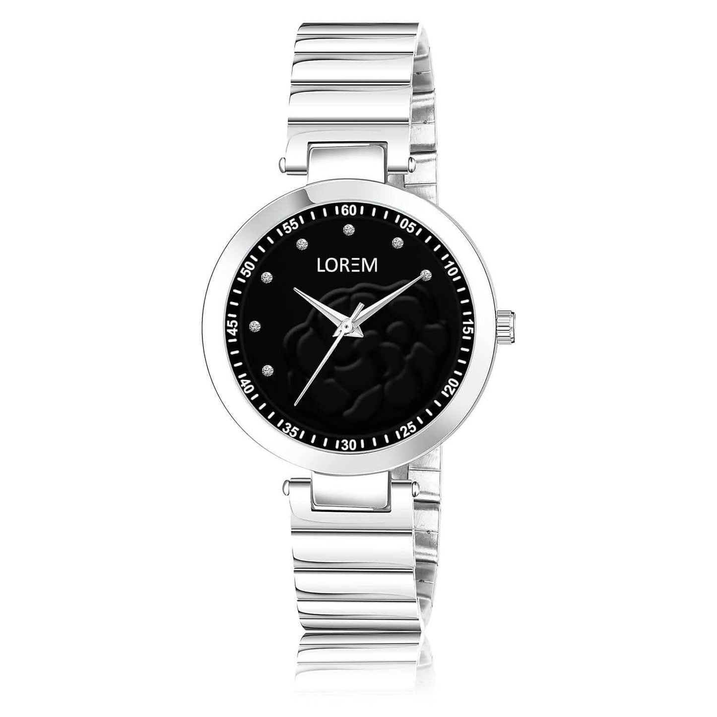 • watches are alson known as it's Quality and Precise Finishing. This LR315 watch Comes with Round shape Black Dial with high premium Silver Metal straps.