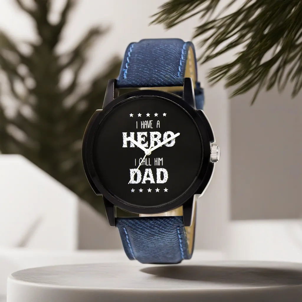 • Celebrate the hero in your life with the LOREM Black Hero Dad Analog Watch for Men (LR07). This sleek timepiece features a bold black dial with a special Hero Dad design, making it the perfect tribute to the unwavering strength and love of fathers.