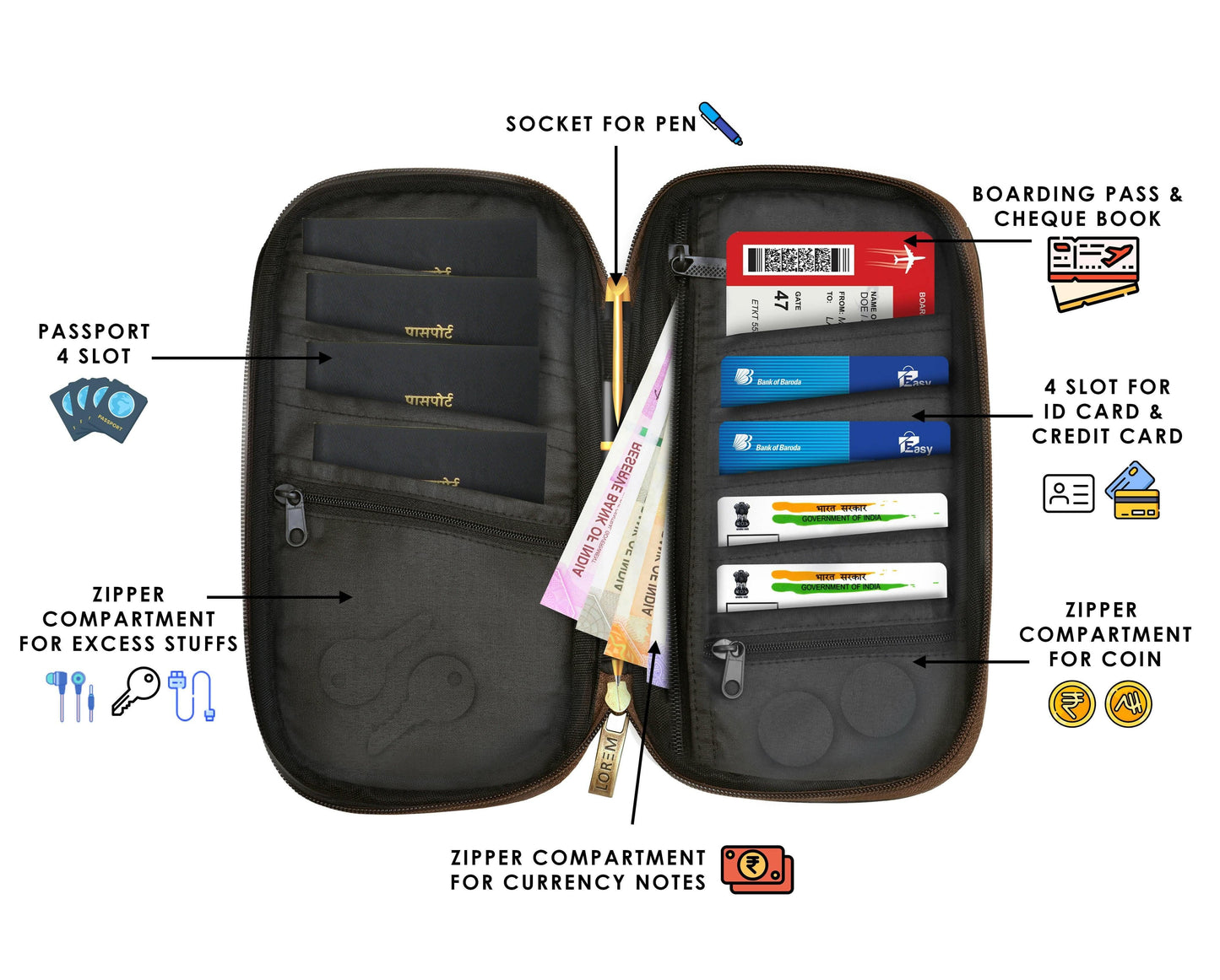 LOREM Brown & Tan Faux Leather Family Passport, Cards, Cheque Book Holder/Organizer for Men & Women (OG03)