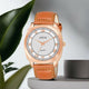 • The time is controlled by a single crown on the side of the watch and This stunning watch is working on a quartz mechanism.