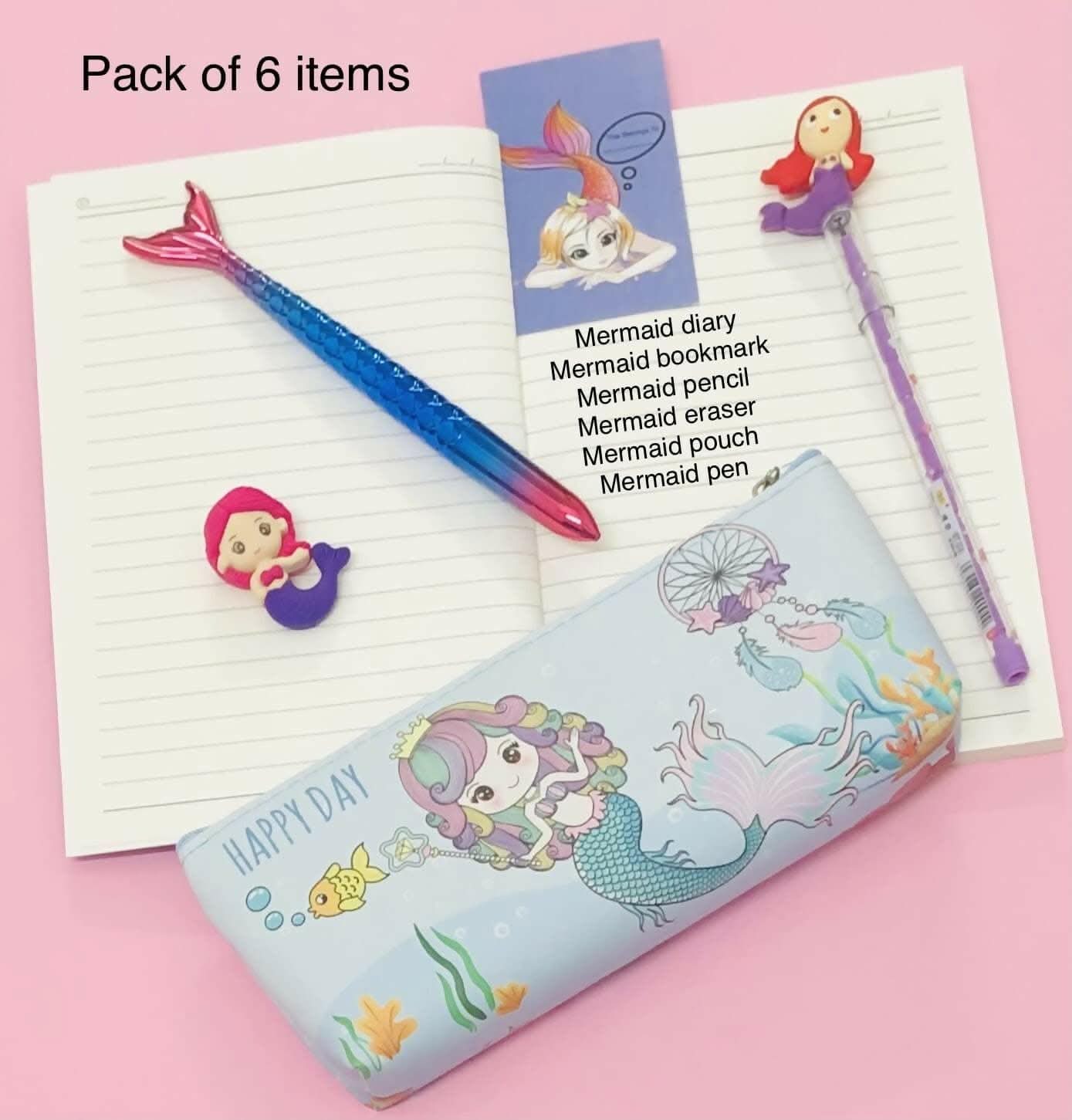 Mermaid Theme Diary Notebook , Pouch , Pen , Pencil , Eraser & Bookmark