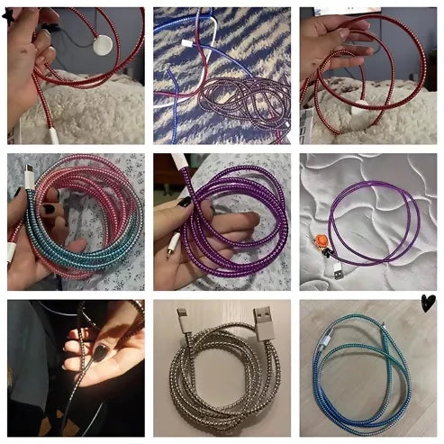 🔄 360° Spiral Protection: Prevents cable fraying and breakage at the ends by tightly wrapping around charging or AUX cables.