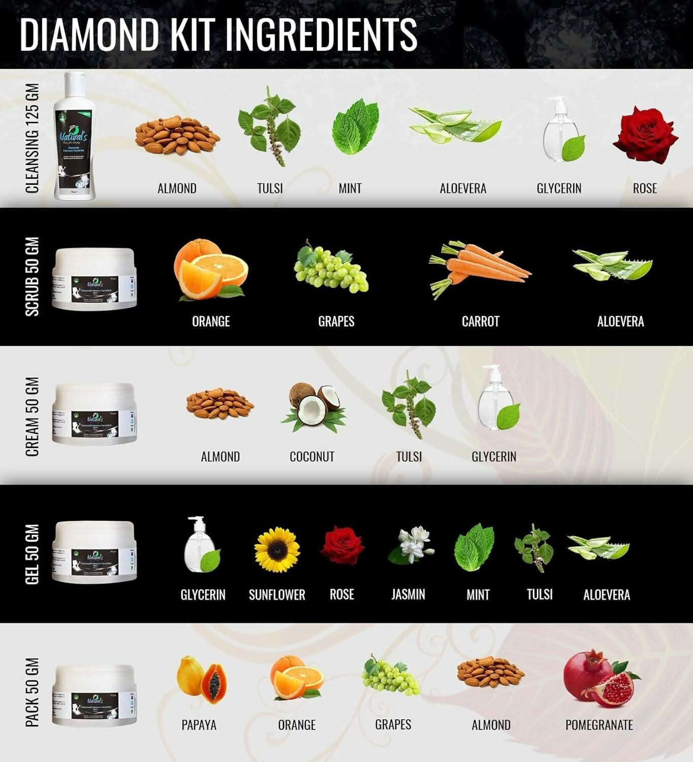 • The Natural's Care for Beauty Diamond Facial Kit (325g) is a premium skincare solution designed to give you an instant glow and skin whitening benefits.