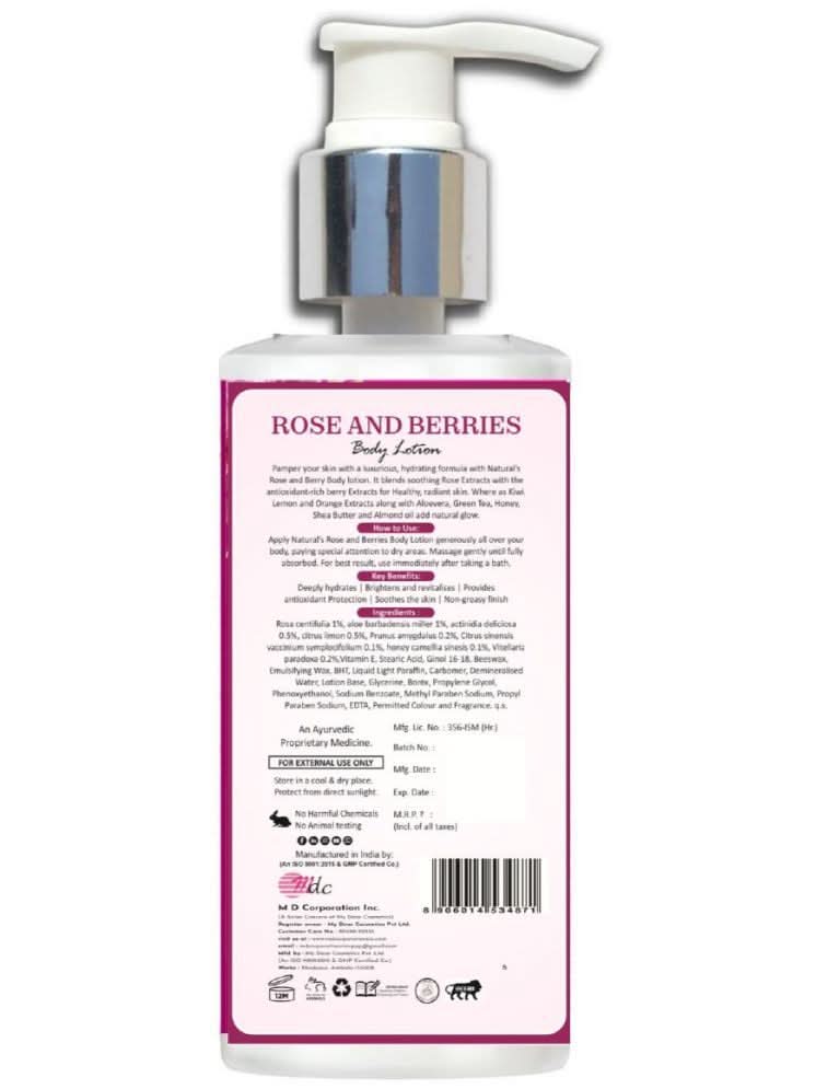 • The Natural's Care for Beauty Nourishing Rose & Berries Body Lotion (250ml) is a luxurious body lotion that deeply nourishes and hydrates your skin.