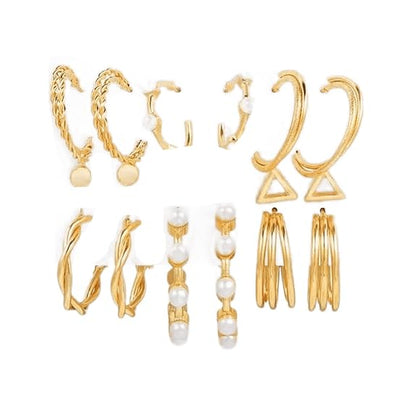 • Intriguing Collection of Latest Designs: This set features nine trendy metal earrings showcasing the very latest stylish designs, offering a curated collection