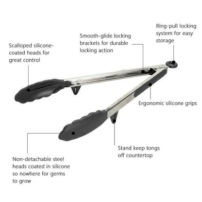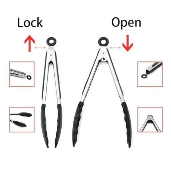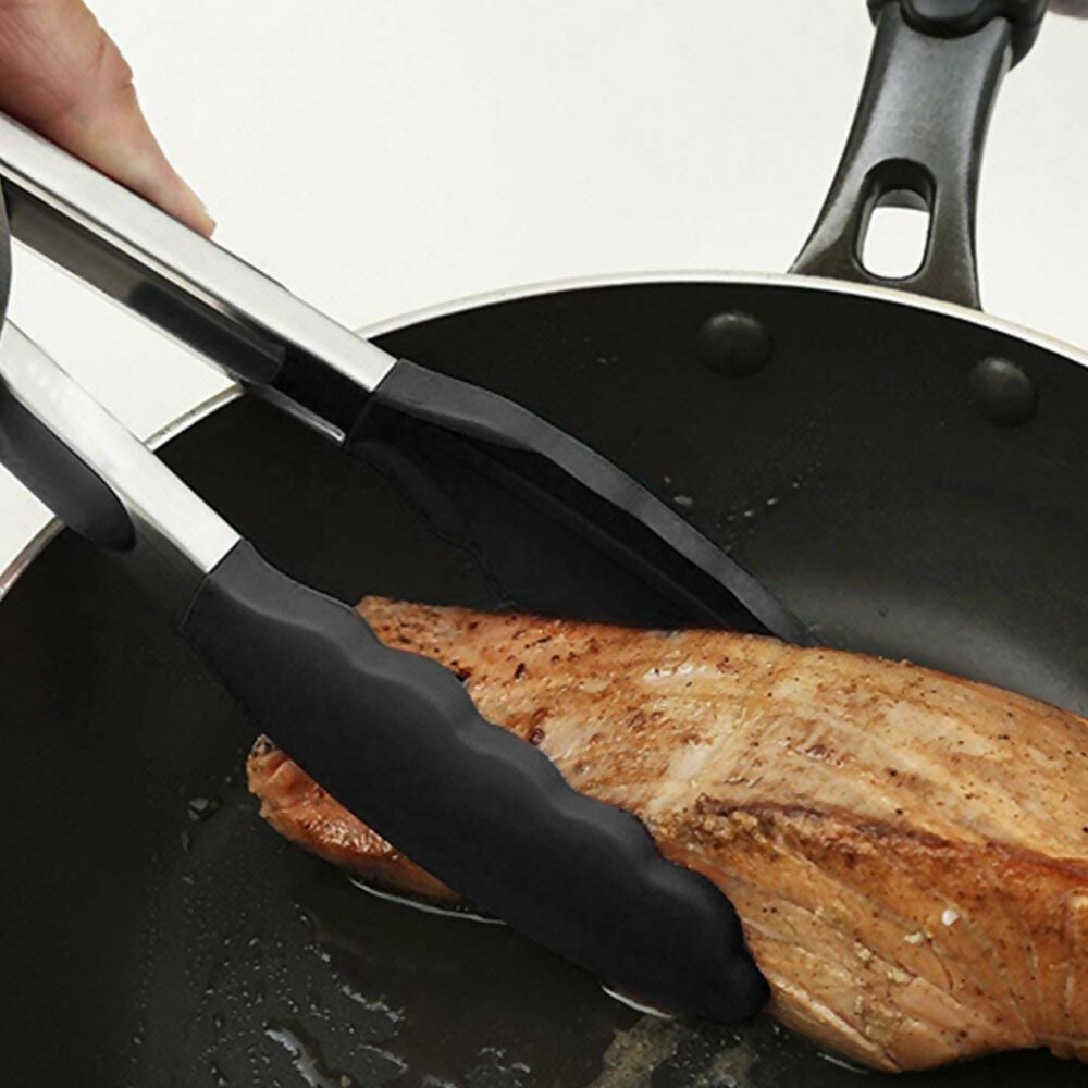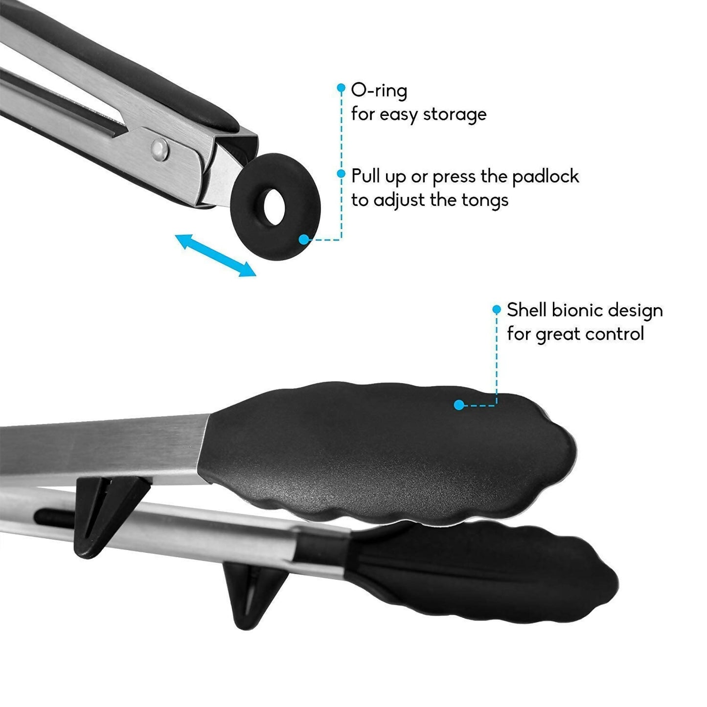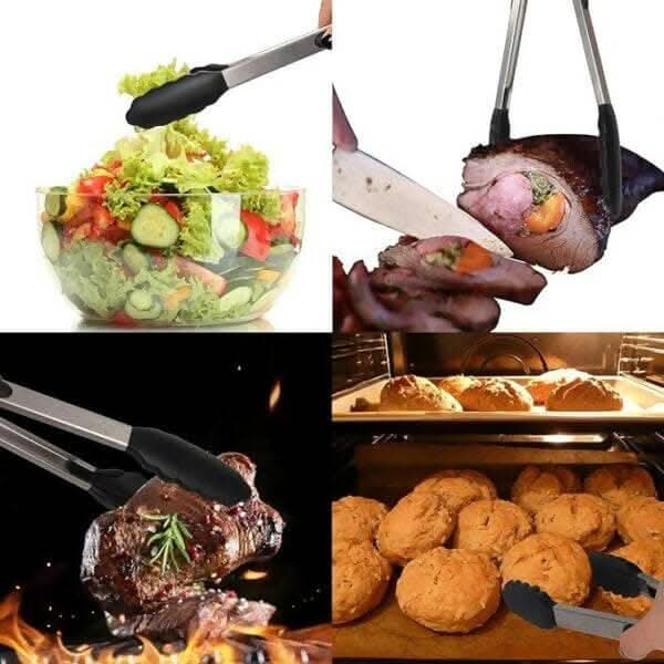 • Built with a sturdy stainless-steel frame and a comfortable ergonomic handle, these tongs are heat-resistant and perfect for grilling, serving, or cooking.