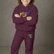 - Coordinated Two-Piece Set: A complete maroon top and bottom set featuring a stylish printed sweatshirt and matching solid joggers.
