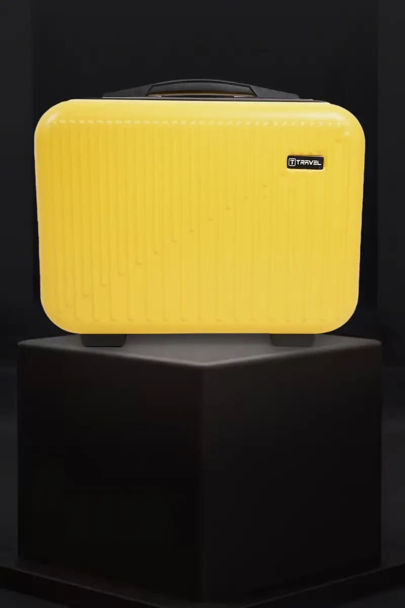 Premium Striped Hard Shell Travel Makeup Vanity Case( Yellow )