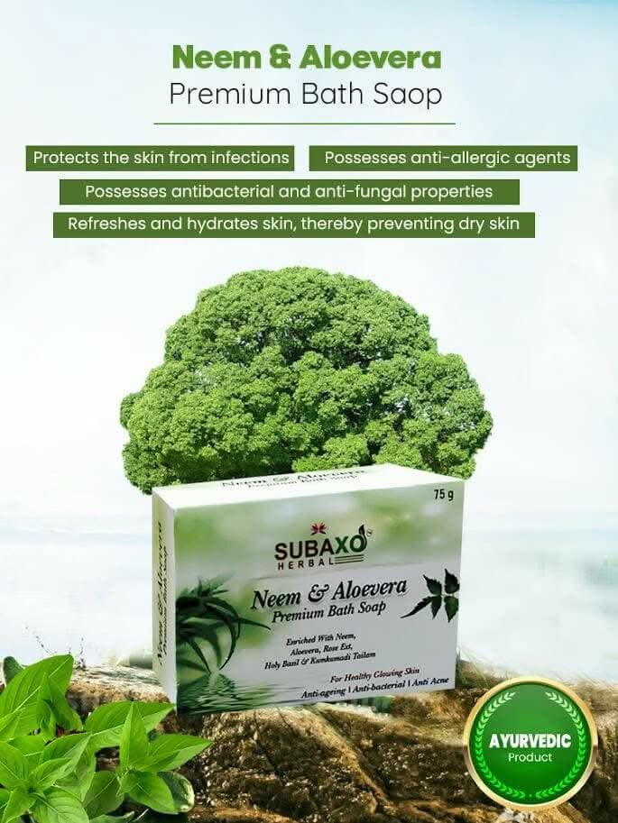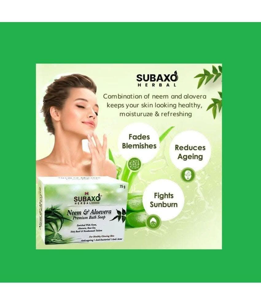 Subaxo Herbal Neem & Aloevera Ayurvedic Bath Soap(75 gm Each, Pack Of 2) & Charcoal Herbal Anti Pollution Deep Cleansing Face Wash (100ml,Combo)